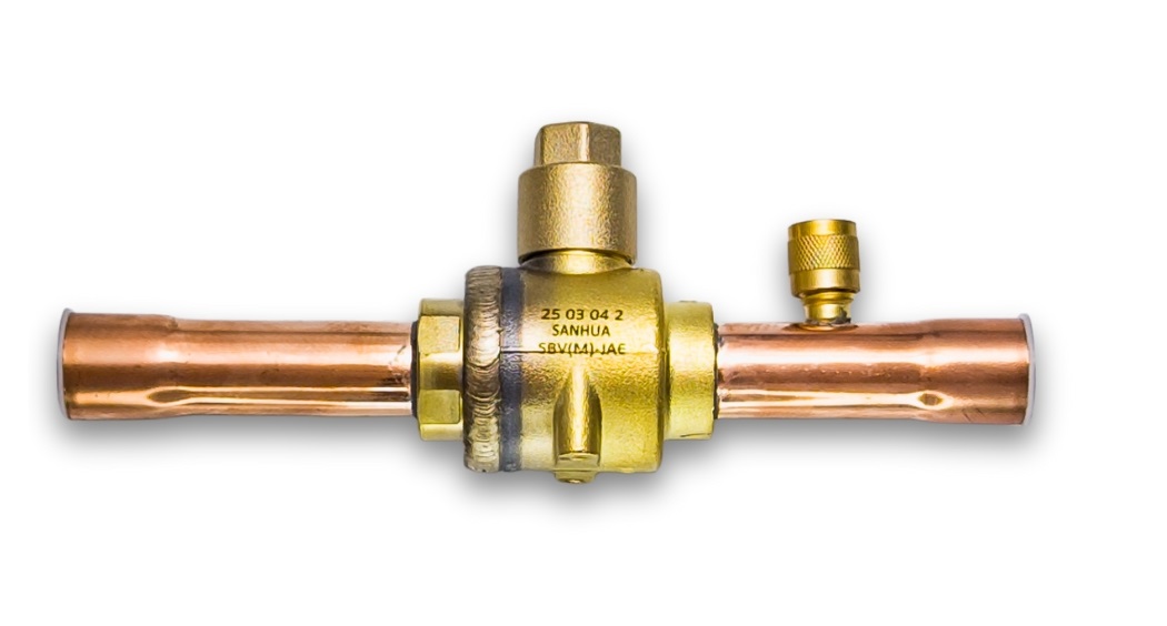 La Sanhua SBV(M)-JA6YHSY-1-SA es una válvula de bola de servicio de 3/4″, diseñada para aplicaciones de refrigeración y aire acondicionado en equipos de mayor capacidad.